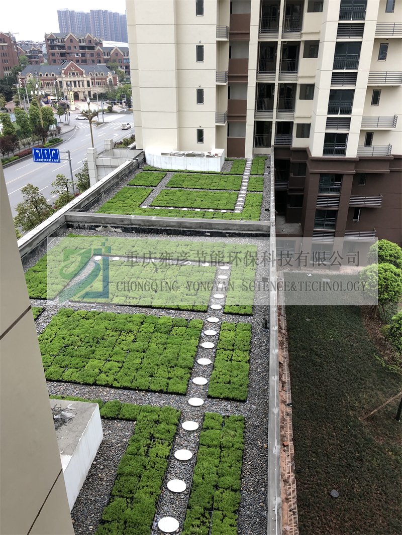 綠色屋頂實施區域為幼兒園屋頂、商業屋頂,施工面積1850.01㎡。